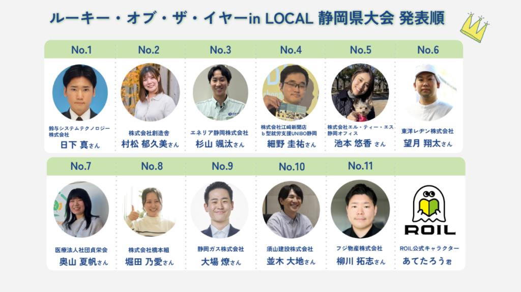 「ルーキー・オブ・ザ・イヤー in LOCAL 静岡県大会」では、静岡で活躍する若手社員(ルーキー)たちが、自らの挑戦や成果をプレゼンテーション形式で発表します。